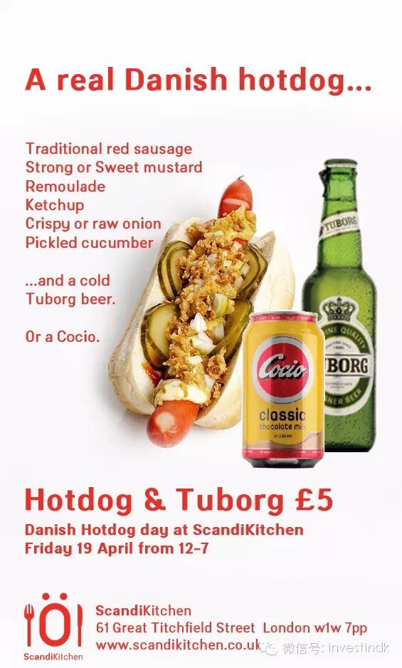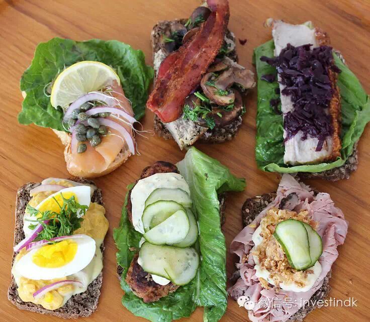 这是开口三明治,也就是少了上面那层的“二明治”。这是丹麦人最当家的美食,如果在冬天吃它你觉得胃有点冷不舒服的话,夏天新鲜的黑麦面包+新鲜的三文鱼+新鲜的菜,二明治来一片是足够饱足的。Hotdog 可别觉得不就是热狗吗?丹麦式热狗有开胃的酸黄瓜相伴,再配上啤酒,这就是夏天! Herring 腌的鲜鲱鱼到了夏天肉质肥美而粘稠,不过它是个让人又爱又恨的东西,没吃过的人也许会受不了它的味道,喜欢的人觉得夏天少不了它。 今天其实也是丹麦的大祈祷节(Great PrayerDay),是当年丹麦Christian五世国王整合宗教节日而留下的一个基督教节日,丹麦的民众要吃白面包来庆祝。(一般他们最爱吃黑麦面包) 节日快乐~世界那么大,试试丹麦菜如何?如果你想要探索丹麦这个你不太了解的国度,果断关注丹麦投资促进局吧,关于丹麦最火的微信号~ ——丹麦投资促进局——