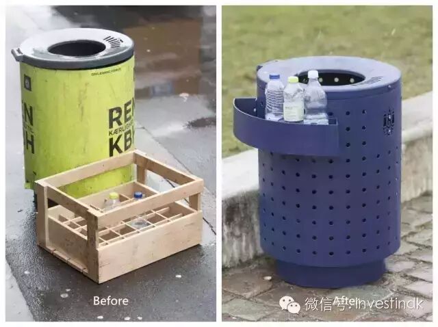 不要小看这个小细节的改动,它的初衷很简单——让收集废瓶的人能更简单轻松地拾瓶子。而它背后则有更大的意义,这个小小的改良能让哥本哈根回收瓶的数量大大增加,小细节大环保的哥本哈根又行动了。