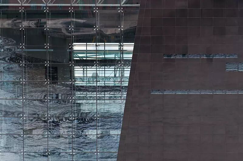 这栋前卫的建筑差一点就被起名为听上去怪怪的“黑方”,幸好时任丹麦文化部长提出了“黑钻石”的备选方案,它才获得了一个和外观相称的美丽名号。其命名源自建筑本身光滑明亮的黑色花岗岩外层,当运河的波光反射在岩体表面时,就好像钻石般的光泽。