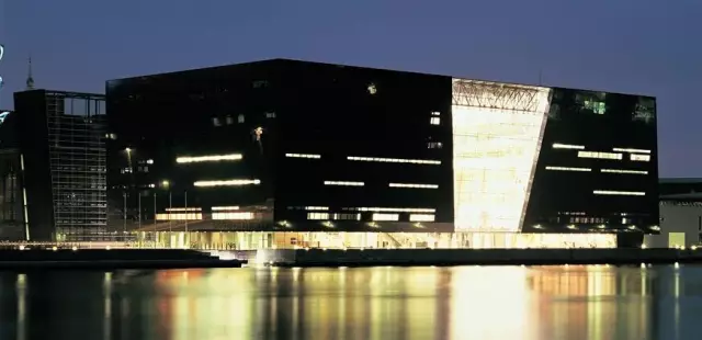 “黑钻石”的设计其实相当简单。整个建筑物呈一个黑色的长方体状,外形上为了追求璀璨的效果,外墙造的并不是垂直的,而是像钻石的切割面一样,特别是每到夜晚灯光亮起,非常惹眼。从外墙看出去,哥本哈根的城市景色尽收眼底。