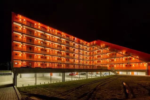 科灵科灵这栋新学生公寓的明亮橙色在当地可以说是十分显眼。其设计公司的CEO Søren Nielsen表示:”这是给学生住的房子,其颜色理当赋予这栋宿舍一个年轻的外表。这座建筑坚如磐石,象征着青春、对生活的热爱和对未来的期许。如果让年轻人住在灰突突又沉闷乏味的建筑里那可真是太糟糕了。我们在设计上不愿意太保守小心,那样将无法表达年轻的勇敢和胆量。“