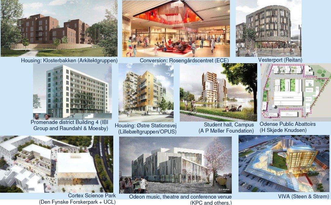 预筹建项目有: · 城市电车轨道 · 跨城桥 · 内港改造 · 城市音乐、戏剧与会议中心 · 新奥登赛大学医院 · Cortex工业园区 · 保障房修建 · 新的教学设施和学生宿舍 · 安徒生童话公馆项目 · 智能奥登赛城市改造项目