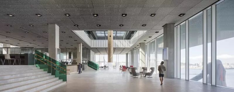 schmidt hammer lassen建筑事务所的高级合伙人Kim Holst Jen-sen总结道:“在大楼内部,开放的布局可以在视觉上将不同功能进行联系,还能通过大量直观的信息为参观者带来更多启发,进而支持社交互动和信息交换。Dokk1将为不同年龄层、兴趣爱好者和文化人提供一个有活力的空间。我们的理念是通过多样的活动和功能来增强互动。”