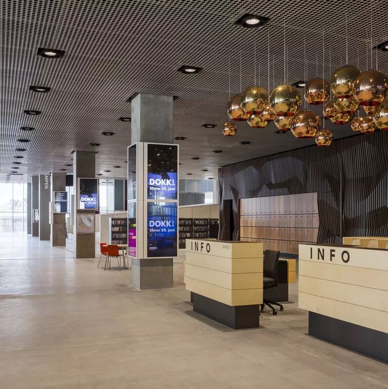 Dokk1的发展在许多方面都受到了schmidt hammer lassen在全球图书馆设计上的影响。例如,收获最多的是在公共咨询的处理上。而对于Dokk1而言,直接影响了多个大厅的尺寸和接待区域的信息上的设计。