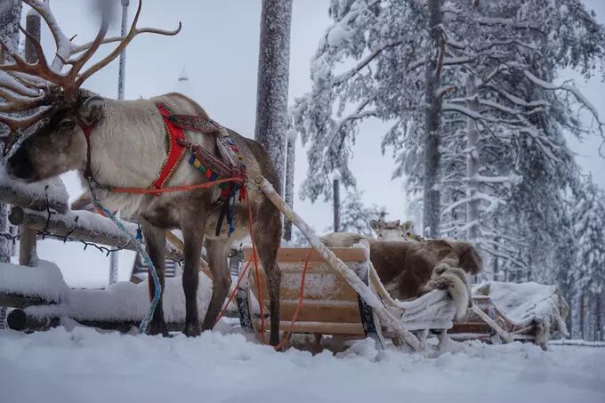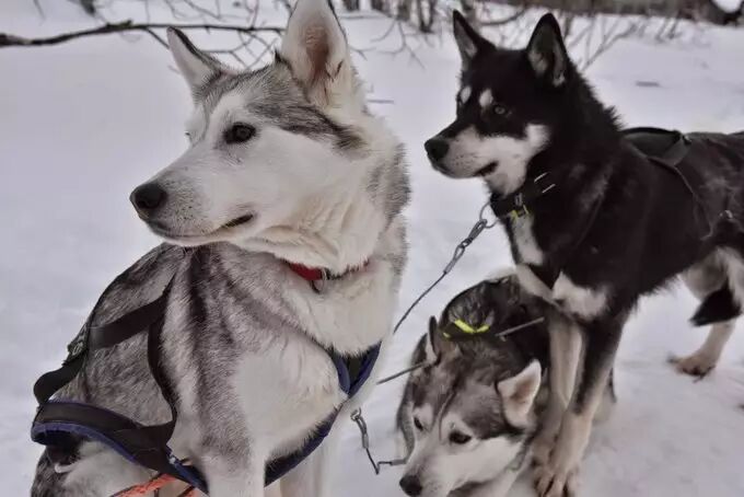 [size=1em]车子偶尔在一个小站停下来,路边的小木屋前拴着阿拉斯加和哈士奇,他们的主人会裹上厚厚的大衣,带着猎枪,牵着他们到银色的林子里探险。