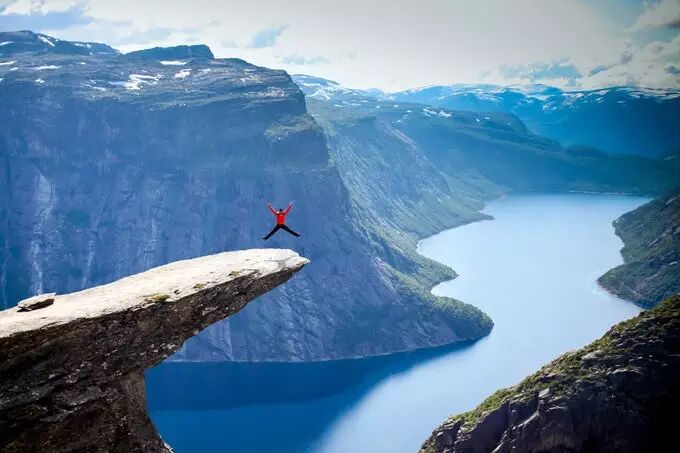 高高的山脚下,有一弯曲折的流水,在水边静静的躺着维京人的小木屋。行走在这样的山间,就如同整个人都镶嵌在由冰川、瀑布、悬崖和山峰所勾勒出的美丽画卷中。说到欧洲的自然风光,很多人会想到瑞士,其实真正的美景,是大自然在挪威的鬼斧神工。