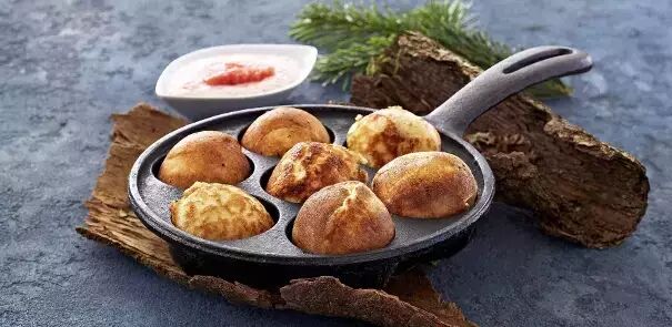 传统的Æbleskiver原料含有苹果,需蘸着各种果酱吃