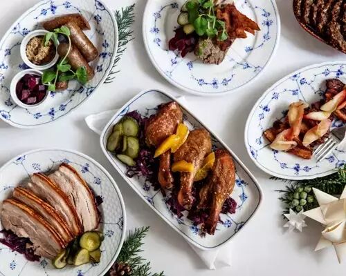 丹麦传统圣诞餐一般包括肉丸、丹麦香肠、黑麦面包、鱼排、圣诞烤鸭、烤猪肉、鱼排、烟鲱鱼等等。当然,喝圣诞啤酒或是杜松子酒也是免不了的。